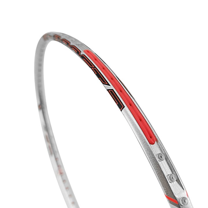The ‘V’ Frame is thinner than standard racquet frames. This Technology reduces vibration as it disperses the impact more evenly around the frame, allowing more controlled and accurate delivery during aggressive stroke play.