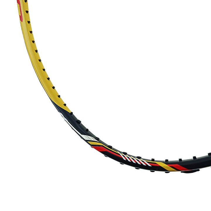 The six pointed ‘star’ like frame with equilateral angles reduces air resistance and the lower frame’s high level strength increases repulsion power. The aerodynamic frame is perfect for lightning fast shots and high speed rallies.