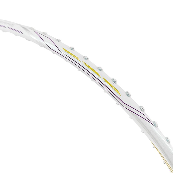 The six pointed ‘star’ like frame with equilateral angles reduces air resistance and the lower frame’s high level strength increases repulsion power. The aerodynamic frame is perfect for lightning fast shots and high speed rallies.