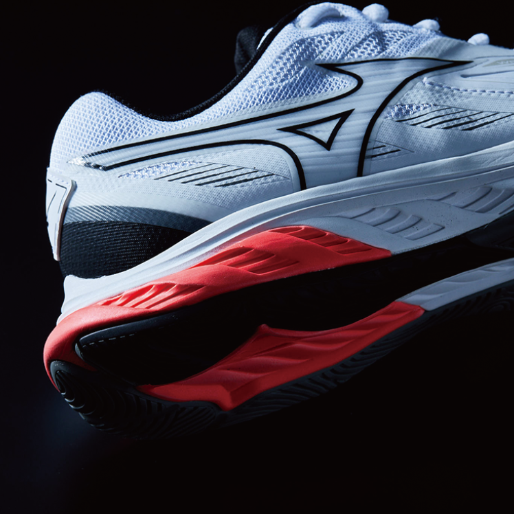 - Excellent cushioning achieved through the placement of the protruding heel structure and the thicker midsole. Plus, leveraging Foam Wave instead of the Wave Plate used to date provides enhanced softness, and loading MIZUNO ENERZY CORE at the forefoot achieves enhanced cushioning and energy return. This helps players make smoother lunges and smoother return motions post-lunge. The shoe also provides enhanced cushioning and stability support through the placement of EVA at two different levels of hardness at the midsole.