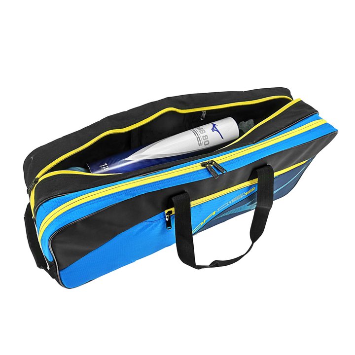Racket compartment comfortably fits up to 6 badminton rackets.