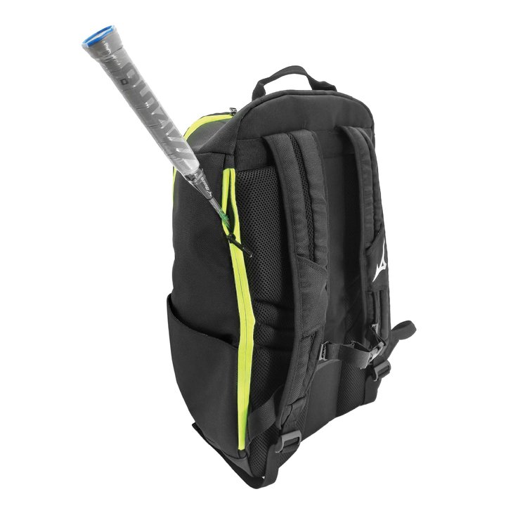 Racket compartment comfortably fits up to 2 badminton rackets.