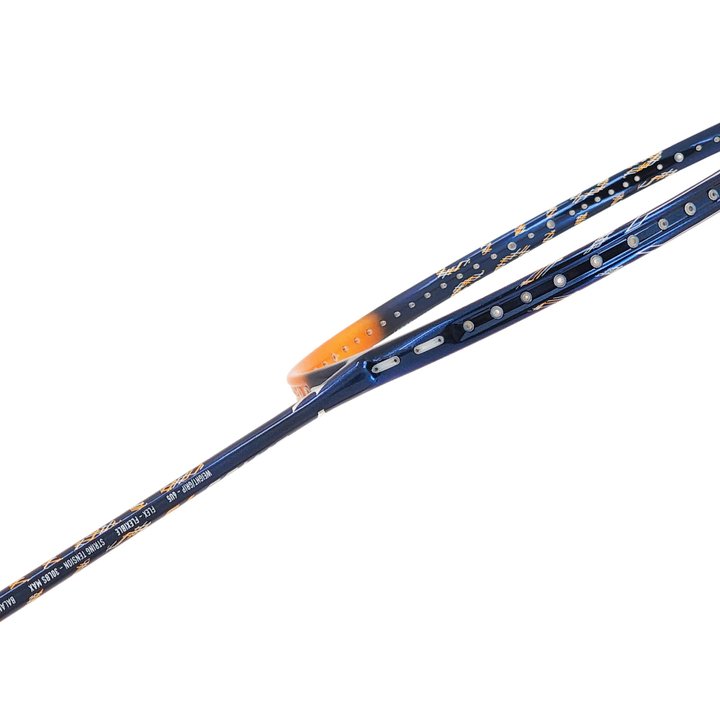 Strengthening the external frame and still keeping the flexibility of the inner frame. By using a special moulding technology, EVA foam is used on the internal of the frame. This construction enables the frame to absorb shock when hitting the shuttlecock and offers more power.