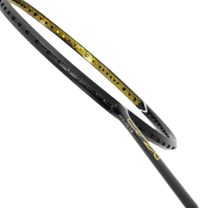 The six pointed ‘star’ like frame with equilateral angles reduces air resistance and the lower frame’s high level strength increases repulsion power. The aerodynamic frame is perfect for lightning fast shots and high speed rallies.