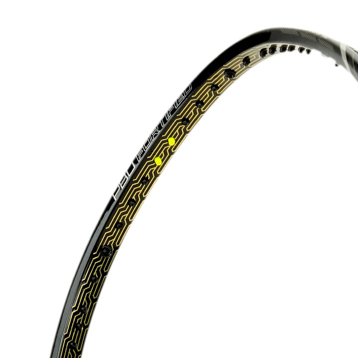 The transition from an Aero Hexagram to a Box Frame through the CombiFrame design releases the ultimate explosion of intense energy, while the calibrated positioning of the PBO fibres on the frame shifts the Head Heavy feel of the racket towards the upper tip portion, generating a massive amount of power for virtually unstoppable shots.