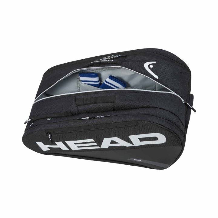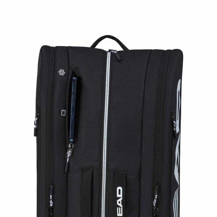 Dazzling modern style meets modern, upgraded functionality in the TOUR PADEL BAG L BK. Fashioned from new fabrics, including a new reflective material, this bag offers truly unmissable, modern style, as well as visibility in the dark. HEAD has listened to what players want and the bag now has two new large external zipper accessory pockets, along with a new external phone pocket that allows for quick and easy access.