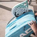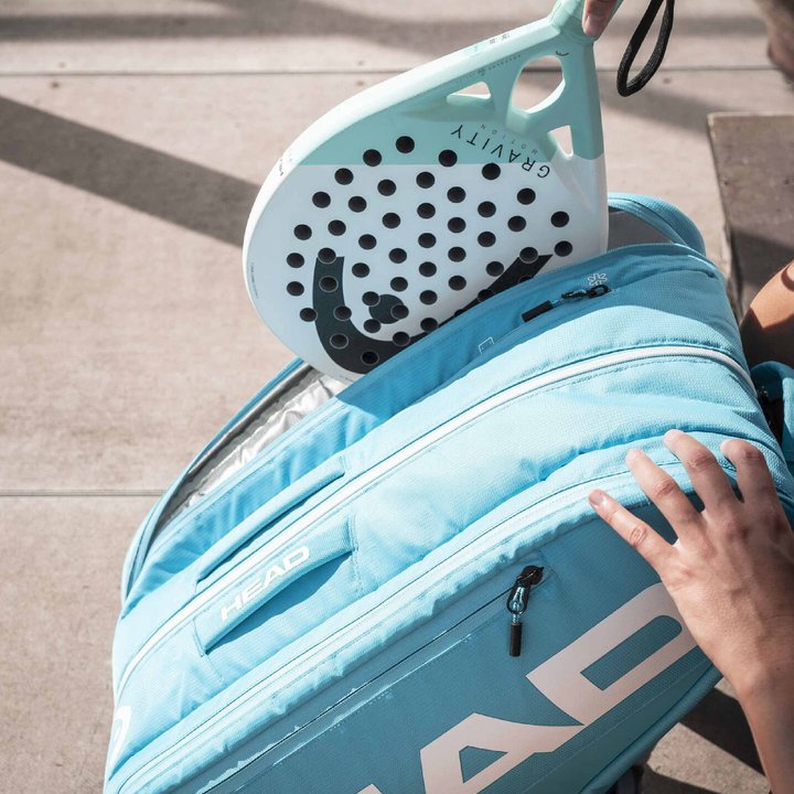 Fashioned from a new fabric, the TOUR PADEL BAG L BL comes in the striking ‘Speed Blue’ color from HEAD’s ski collection. That iconic blue is combined with the modern, upgraded functionality, which now includes two new large external zipper accessory pockets, along with a new external phone pocket that allows for quick and easy access. You can carry up to 7 racquets in the three main compartments, one of which has CCT+ climate control technology to protect your racquets against extreme temperatures. Looking after your belonging is easy with a bag that has also an inside zipper accessory pocket and an integrated shoe compartment, and the backpack straps allow you to carry this in comfort. As an illustration of how HEAD is trying to reduce plastic usage, the hangtag is made from recycled paper and tied with hemp cord, and the bag is presented in a recycled plastic bag.