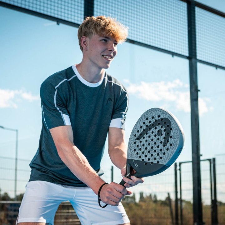 Supercharge your game with the VIBE padel racquet, an oversized, teardrop-shaped all-rounder. With its easy power and soft playing feel, this is ideal for casual players who are starting to compete at a club. While the fiberglass hitting surface supplies a softer feel and touch, the larger sweetspot offers more tolerance and forgiveness. The VIBE has a modern, playful design with pops of color, ensuring you will look the part on court.