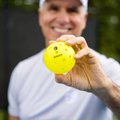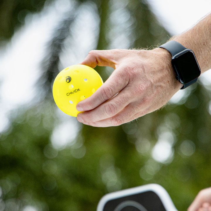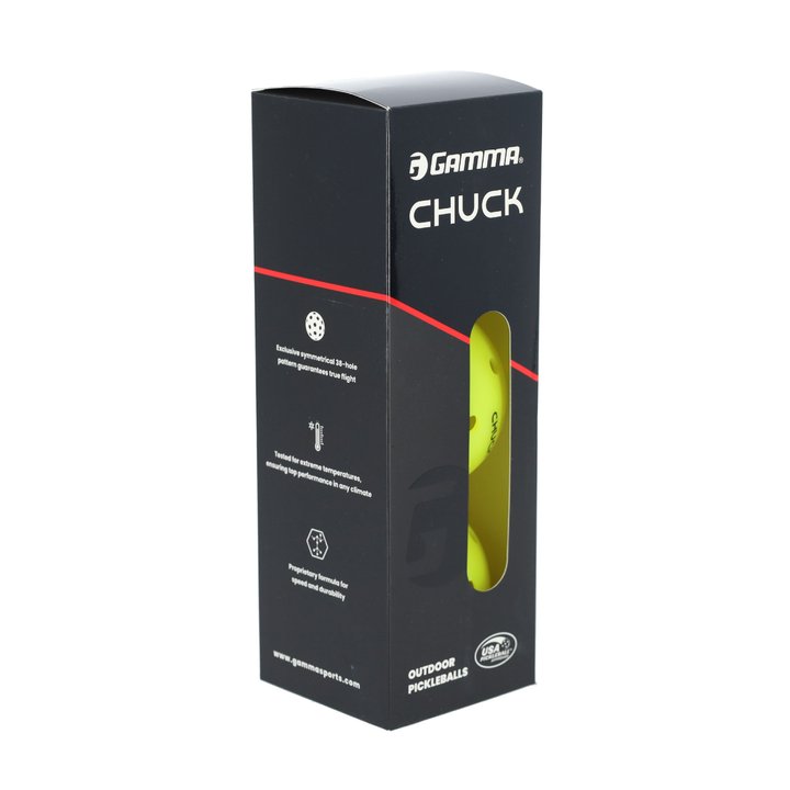 Meet CHUCK, the pickleball that wants you to feel great about your play. The GAMMA Chuck Tournament Pickleball, designed with 38 holes instead of 40, is the only ball on the market that's completely symmetrical, for a true flight experience. What's more, CHUCK is engineered to withstand temperatures at both ends of the outdoor spectrum - so CHUCK won't warp or crack when exposed to heat and cold.