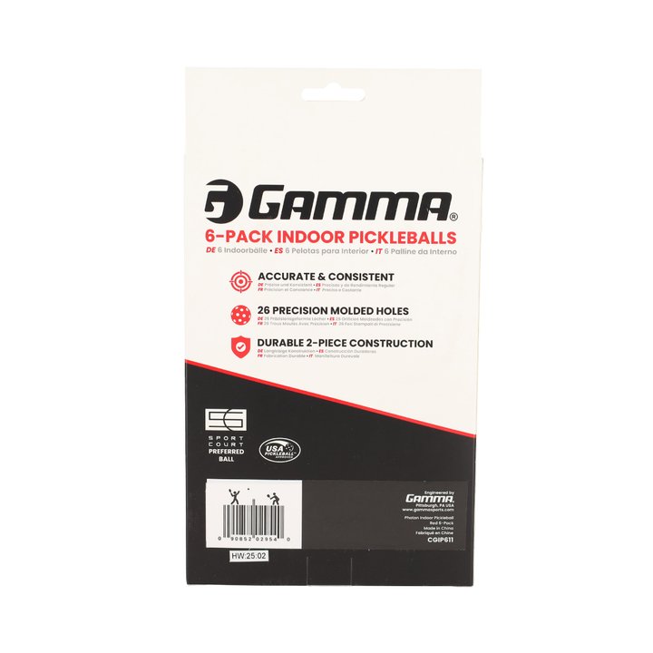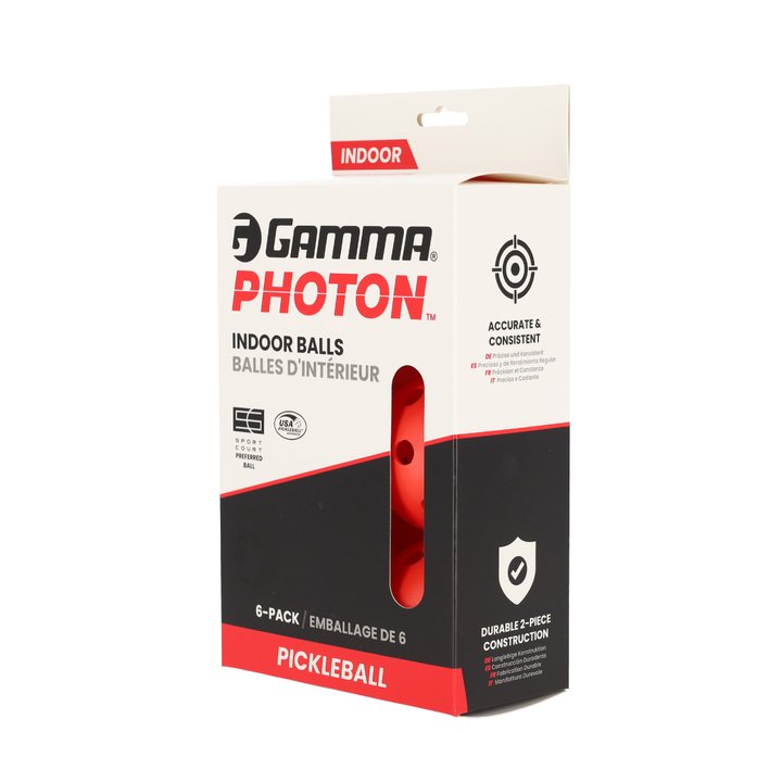 The GAMMA Photon Indoor Pickleball has all the attributes needed to make it a reliable option for casual or higher level play. With consistency, durability and true flight, it's able to stand up to the rigors of frequent games. The Photon is made with a 2-piece construction that allows it to fly true with a consistent bounce on any type of indoor court.