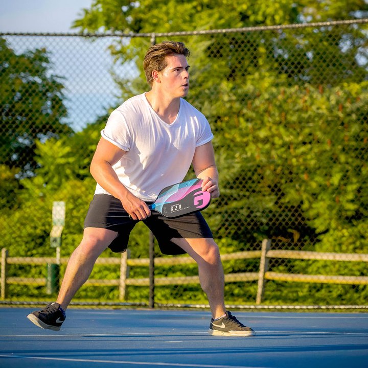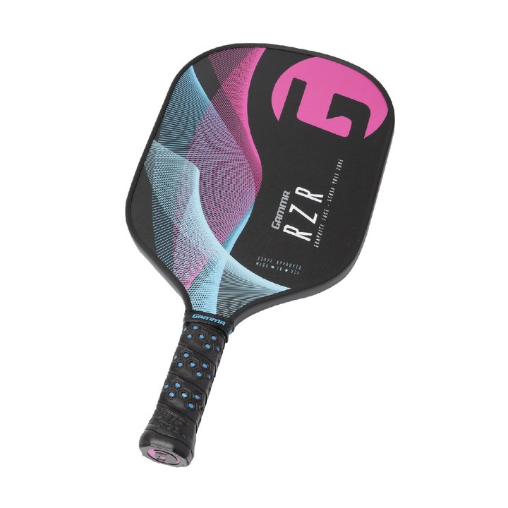 The GAMMA RZR is equipped with Sensa Poly Core technology that delivers balance, power, and touch in a mid-weight pickleball paddle. The textured graphite face combined with the GAMMA Honeycomb Cushion grip raises the level of your play, enhances ball bite, and promotes perfect placement from the baseline.