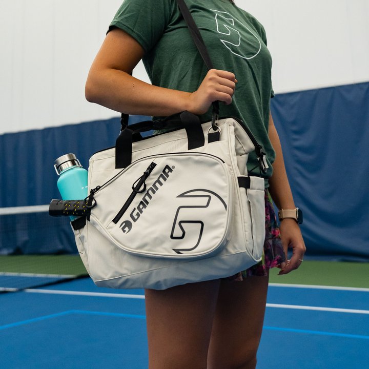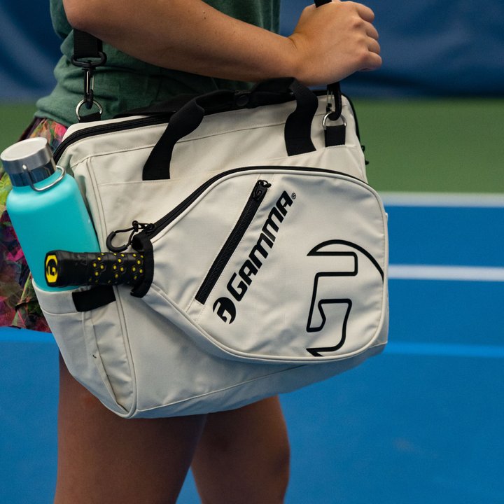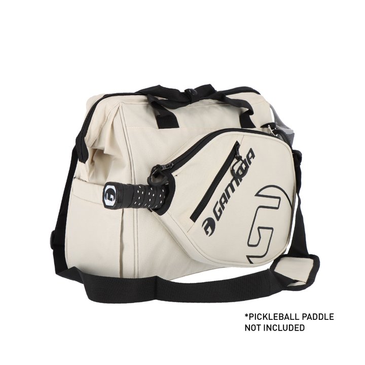 The GAMMA Tour Tote Bag offers you the solution to fit all your Pickleball equipment in one place. Its versatile and accommodating design means that you can hold whatever you need for the court: extra attire, car keys, towels, water bottles or Pickleballs. Whether it'll fit or not is hardly a question. And with the paddle pocket, you won't have to feel like you're cramming your paddle in with a myriad of other things - it can stay safe and secure at all times. If you're looking to conquer the court, look no further than the GAMMA Tour Tote Bag. Comes in bold off white/black colour designs.