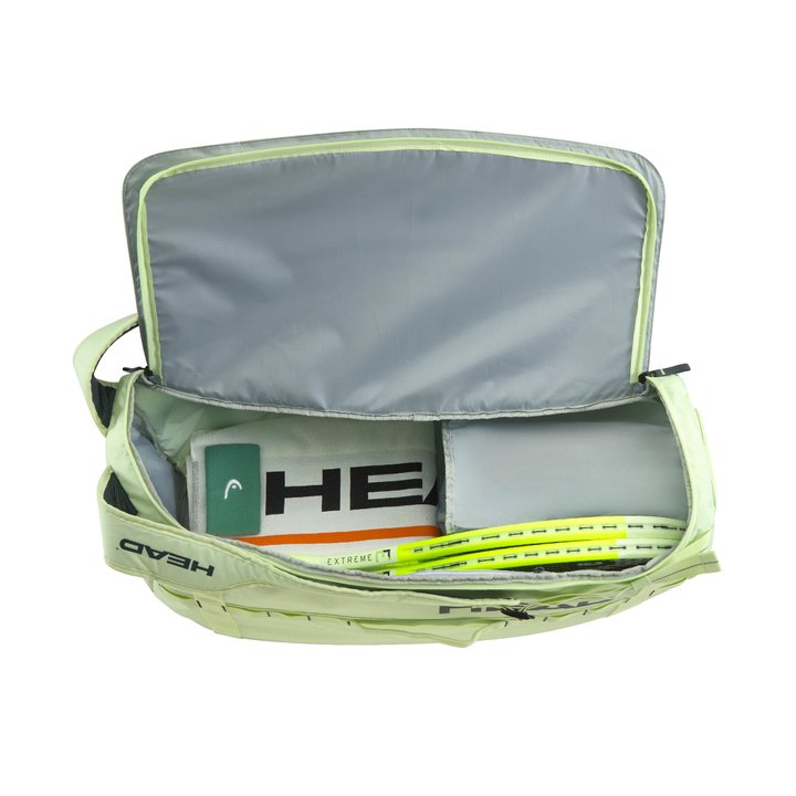 The PRO DUFFLE BAG M has been updated with a new, contemporary design that matches the EXTREME racquet series and a new ripstop fabric that enhances durability. With one compartment, there’s space for up to 6 racquets. The diagonal adjustable shoulder strap allows you to be flexible when you’re on the road, while the inside mesh pocket and outside pocket allow quick access to anything you need. As an illustration of HEAD's commitment to sustainability, the bag comes with a hangtag crafted from recycled paper and secured with hemp cord.