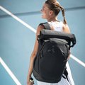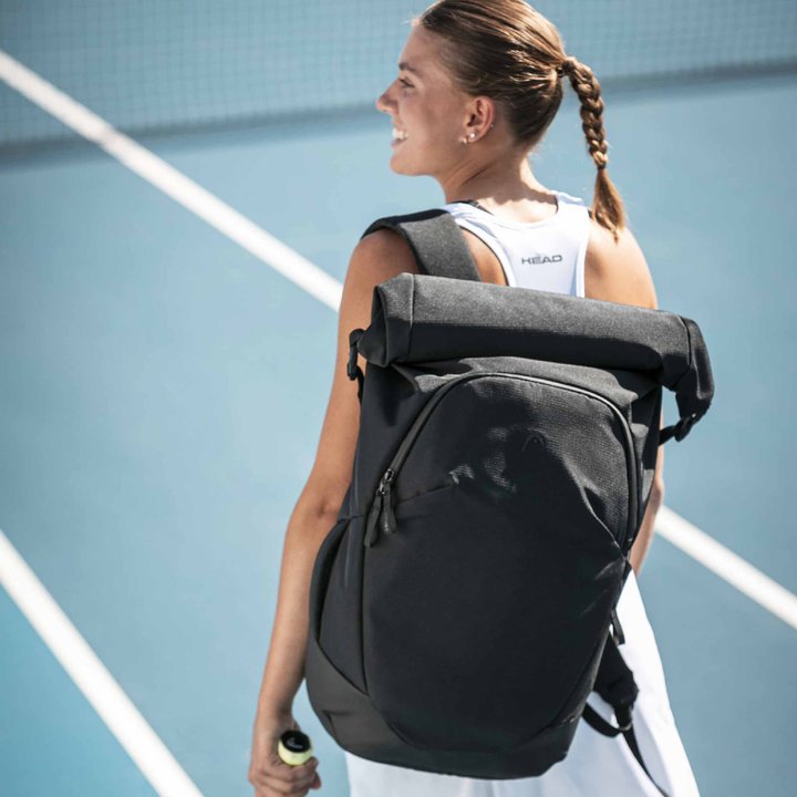 Whether you’re on the way to the courts, to a business meeting, or travelling, it’s easy to organize your belongings with the new PRO X RACQPACK backpack. Fashioned from recycled PET bottles, this is a sustainable and versatile choice with a rolltop design, different accessory pockets and a laptop compartment, along with a racquet compartment with CCT+ climate control technology that protects up to 3 racquets. Offered with an EVA backpack construction and adjustable chest buckles, this is a premium, comfortable backpack. This bag is an illustration of how HEAD recognizes its responsibility to be more sustainable and to help protect the planet, with the hangtag made from recycled paper and tied with hemp cord.