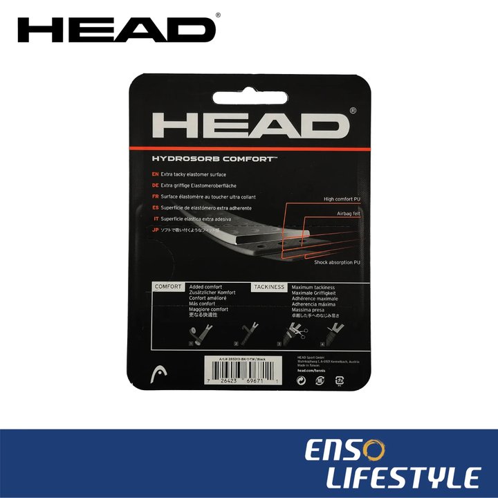 Thanks to its thickness, the HYDROSORB COMFORT replacement grip and its increased cushioning provides dampening and ultimate comfort, whilst protecting your arms. Available in black or white, the COMFORT provides the same typical firm grip than the rest of the family.
